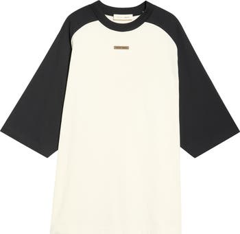 Soft, breathable cotton makes an everyday favorite of a baseball T-shirt made with roomy raglan sleeves and a fit that lets you work, play and relax as your days demand. The brand s logo plaque finishes off the laid-back look.