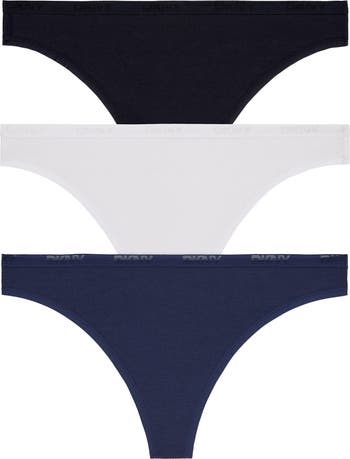 A stretch-softened blend of cotton and modal brings utter comfort to a set of mid-rise thongs encircled with logo lettering around the waist.