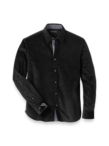 Elevate your casual look with this classic corduroy shirt featuring a point collar, two-button adjustable cuffs, and break-resistant buttons. Designed for comfort with a shorter tail and gusset detail, it wears perfectly tucked or untucked. Contrast fabric accents inside the neckband, cuffs, and placket add subtle style. Available in classic and big tall sizes. Imported quality for everyday wear.