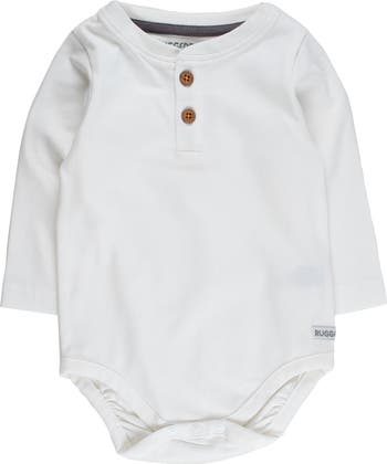 This soft, stretch-enhanced cotton bodysuit fashioned with long sleeves and a neat henley placket is a versatile addition to baby s playtime wardrobe.