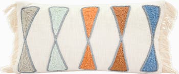 - A colorful and cozy lumbar pillow with cotton fabric, embroidery, and fringe