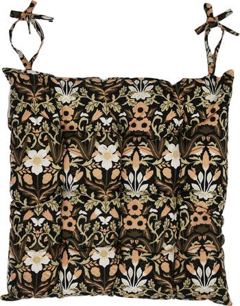 - This eclectic chair cushion features quilted cotton construction in a whimsical floral print, finished with stylishly functional ties