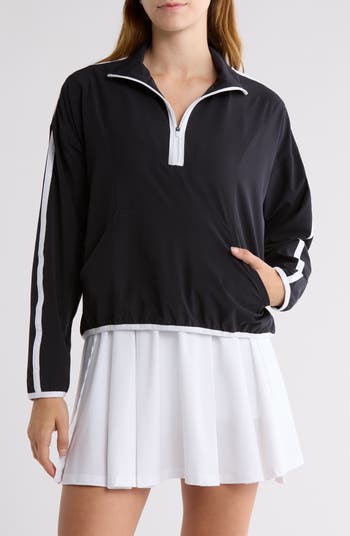 Perfect for cool downs and errand running alike, this half-zip pullover boasts sporty stripes and contrast binding.