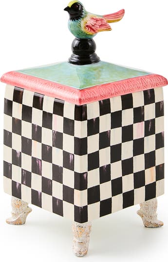 Pastel accents highlight the brand s signature hand-painted color-dragged checks on this birdie-topped ceramic box that s an adorable way to stash all your tiny treasures.