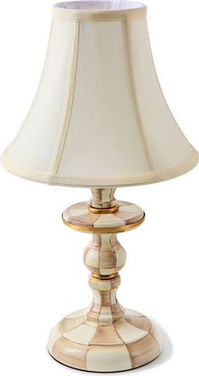 This bell shade lamp set on a hand-painted candlestick base is a bright idea for any space.