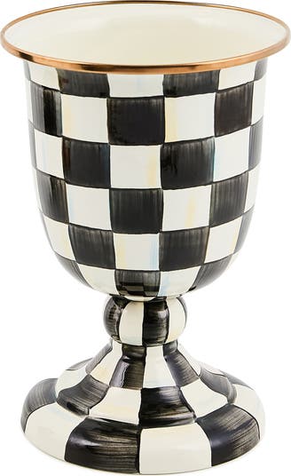 Bring a maximalist-approved addition to your living space with this pedestal-style steel vase hand-painted with the brand s signature Courtly Check motif.