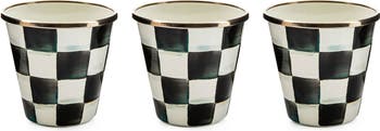Add a touch of sophistication to your garden or your kitchen windowsill with this set of three petite herb pots hand-painted with signature color-dragged Courtly Checks. The pot is made from heavy-gauge, hand-glazed steel and rimmed in bronzed stainless steel.