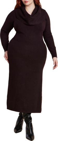 - Cut from stretch yarn for a fitted bodycon silhouette, this draped cowl neck sweater maxi dress taps comfort and style in equal measure. Pair the side slit with your favorite boots.