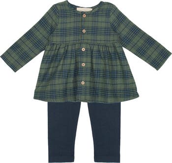 Introducing a touch of rustic charm to your little one s wardrobe with the Cozy Creatures two piece set. This adorable outfit pairs a green plaid patterned top with cozy knit bottoms for a look that?s both stylish and comfortable. Fabric Care Machine Wash Cold | Line Dry | Do Not Bleach