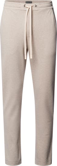 When the boundaries between work and private life become blurred, you need a wardrobe that can cope with this oscillation. These cozy pants with tapered legs were designed for just that. The comfortable design with practical pockets and drawstring allows maximum comfort for everyday wear. The pants are also made from sustainable double-face jersey. The brushed fabric blend of organic cotton and recycled polyester on the inside makes both a fashion and environmental statement.