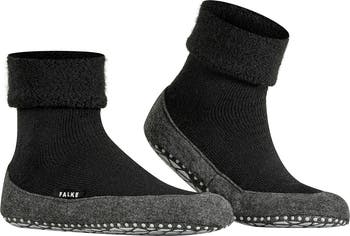 Soft, breathable wool brings warmth and comfort to sock-style slippers that cuff at the ankles and put slip-resistant grip under every step.