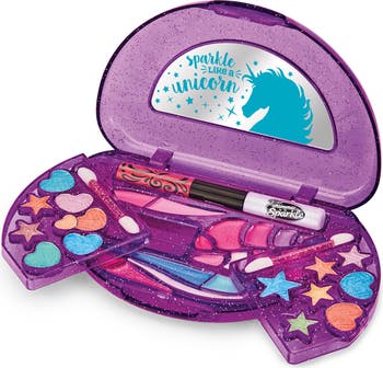 The Cra-Z-Art Shimmer N Sparkle - Girls this All in One Beauty Compact has everything you need for playing makeup with your friends. Your eyes, cheeks, and lips will be beautiful after applying this fun colored makeup! Perfect for makeup color selection for beginners that want to play with their friends and have makeup parties. This is also great for the on-the-go fashionista. This set includes a make up compact with mirror, 15 lip colors, 15 eye shadows, 2 cheek colors, 1 tube of lip gloss, and 4 makeup applicators. Great for ages 8 and up. WARNING: CHOKING HAZARD -- Small parts. Not for children under 3 years.