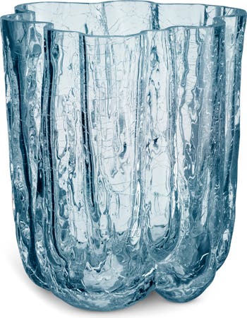 This crystal vase is patterned by cracks, beautifully preserved in glass creating a sculptural, expressive exterior.