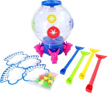 Catch as many flying pigs as you can with the exciting game from Cra-Z-Art. Players use the enclosed wands to try and catch as many whirling pigs from the enclosed motorized globe as possible. But, don t catch the white pig or all your piggies get put back into the bowl! Once the flying pigs have all been caught, add up your points to determine the farmer s MVP. The player with the most points wins the game. This game allows kids to explore the fun world of interactive play while also encouraging cognitive and tactile learning. Can be played with 2 or more players. Game includes: 1 flying pig enclosure with fan, 50 foam pigs, 4 colored wands, 4 game mats and instructions. Requires 4 AA batteries and a Phillips head screwdriver (sold separately). Perfect for kids ages 4 years and up.