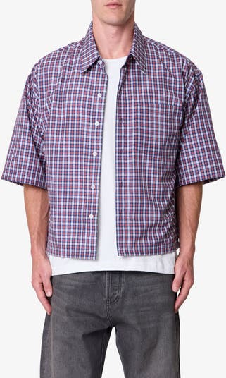 Practically made for layering, this slightly cropped button-up shirt is made of crisp cotton-blend poplin.