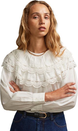 This stylish and elegant blouse with frills is perfect for any casual or formal occasion. It s Machine washable and crafted from 100% cotton for comfort.