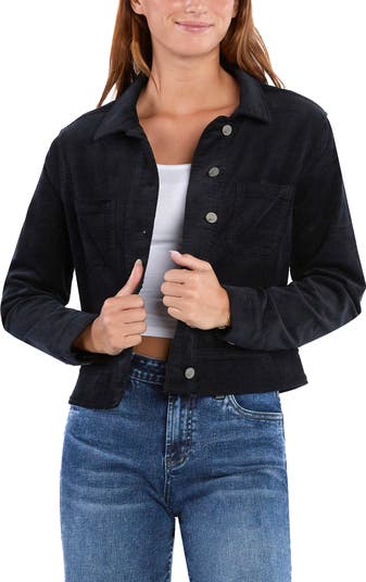 Soft corduroy brings warmth and texture to this season-perfect jacket updated in a modern cropped fit.