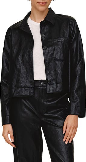 Aged faux leather gives a timeless look and feel to this everyday jacket made in a contemporary cropped fit.