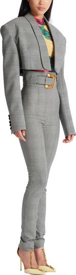 Cropped jacket in Prince of Wales jacquard Italian tailored collar Long sleeves Structured shoulders Cuffs with covered buttons Breast pocket Cropped, straight cut Model measures 175cm and wears a size 36 Main material: 95% virgin wool 4% polyamide 1% elastane Made in Portugal Item: GF1SD260WD31 100% of the wool fibres used to make this garment are sourced from sheep farms that are certified and animal welfare-friendly