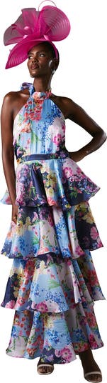 Make a captivating entrance at your next formal event in this show-stopping Coast maxi dress. The distinctive cross neck design frames the décolletage beautifully, while the tiered frill skirt creates a dramatic silhouette that flows gracefully with every step. The satin fabric catches the light magnificently, showcasing the artistic floral print to full effect.