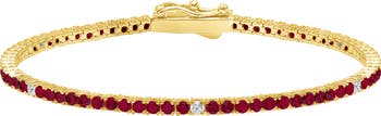 Clear and colorful cubic zirconia are hand-set along the circumference of this slim-but-striking tennis bracelet.