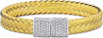Embrace elegance with our Cubic Zirconia Weave Bangle in Two-Tone Sterling Silver. This captivating bangle features brilliant cubic zirconia stones intricately woven into a sophisticated design. Crafted in two-tone sterling silver and measuring 7.5 inches, the bangle seamlessly blends classic charm with modern flair. The contrasting tones enhance its visual appeal, making it a versatile accessory for various occasions. Elevate your ensemble with the radiant sparkle and intricate craftsmanship, a statement piece that effortlessly complements your unique style.