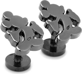 Give your favorite Mouseketeer these blackened cuff links shaped like Mickey in his iconic pose with open, welcoming arms.