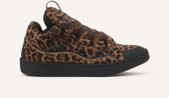 The Curb sneaker embodies the vibrant spirit of the 90s, with its bold, oversized silhouette.It embodies several of the House s signatures: Contrast, with a variety of materials, textures and colors. The ribbon, which represented the bond between a mother and daughter for Jeanne Lanvin, with oversized laces made in Greece, double waxed and featuring a chevron motif. And finally, the Circle, with rounded lines, an architectural detail inspired by Art Deco. This season, the Studio presents a leopard-print pony leather version that combines the House s couture heritage with contemporary sneaker codes.