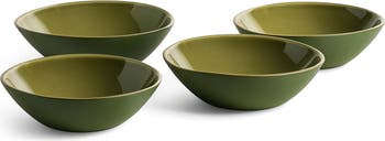 Stoneware plates are naturally able to maintain even temperatures, both during and after the cooking process. Scorch that may alter flavour is prevented, dessert and cold soups are kept cold, and warmth is maintained in soups and stews. Rounded or organically shaped dinnerware, handmade by local artisans and designer-made, our collection is special and unique by its matte finish. Dimensions: • Diameter: 7.9inches (20cm) • Height: 2.2inches (5.5cm) • Weight: 1.2lbs (0.55kg) Specifications: Pack of 4 Food safe Microwave and dishwasher safe Oven use: because stoneware is a fragile material, we advise extra caution as we offer no guarantee. Check out our Use Care Handmade Material: Enameled stoneware Completely free of toxic heavy metals (like cadmium and lead) and carcinogens found in other, less robust, ceramic forms. Made in Tunisia Disclaimer: Our products are handmade by ceramists, one at the time. As such, they re all unique in their own ways and you may spot a small finger print on the base, or the imprint of the grid onto which they were placed when fired. Please note that these are the marks of true craftsmanship.