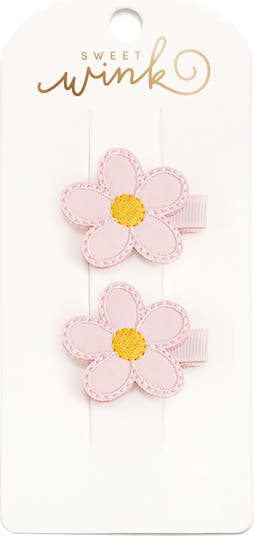 - This clip set includes: 2 pink and yellow daisy hair clips.