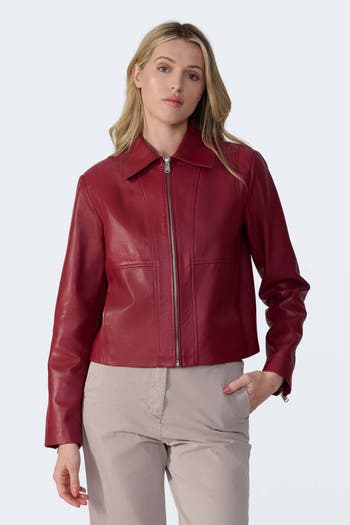 Hand-crafted from premium British leather, this cropped jacket features a structured silhouette, lightweight feel, and timeless details for lasting versatility. Designed with clean lines, a classic collar, and an exposed front zip closure, this leather jacket offers a polished look that transitions effortlessly from day to night. Subtle seaming and a streamlined fit provide a modern edge, while the lightweight construction makes it ideal for layering in changing weather. Durable and luxurious, this piece is crafted to endure season after season. Made in Turkey, imported, and shipped from the USA. Ideal for those seeking a genuine leather jacket with a minimalist design, perfect for pairing with jeans, trousers, or dresses.