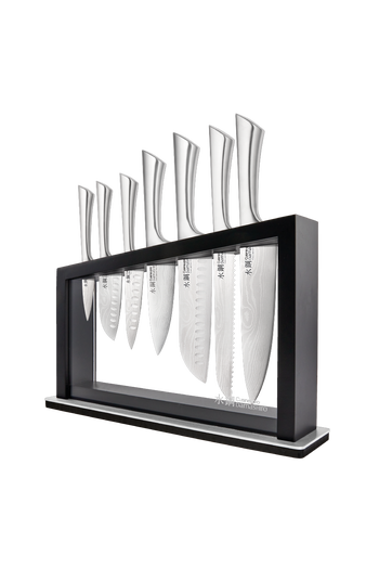 The Cuisine::pro® Damashiro® Satori 8-Piece Knife Block Set, with its exquisite craftsmanship and cutting-edge technology, delivers high-performance and a modern touch to your kitchen.