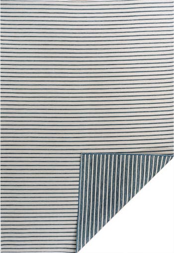 Damon Classic Coastal Pinstripe Reversible Machine-Washable Indoor/Outdoor Area Rug