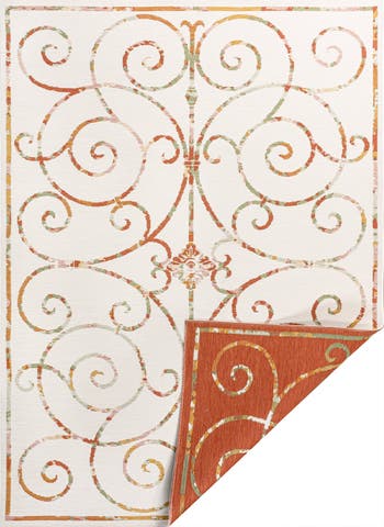 Danae Classic Cottage Filigree Scroll Reversible Machine-Washable Indoor/Outdoor Area Rug