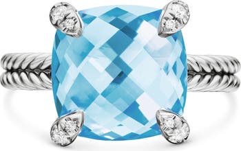 Sterling silver. Faceted blue topaz or black onyx. Pavé diamonds, 0.05 total carat weight. Ring, 11mm. Imported.
