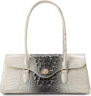 Gleaming hardware and croc-embossed leather add signature appeal to a scaled-down satchel perfect for storing the essentials with sophisticated style.