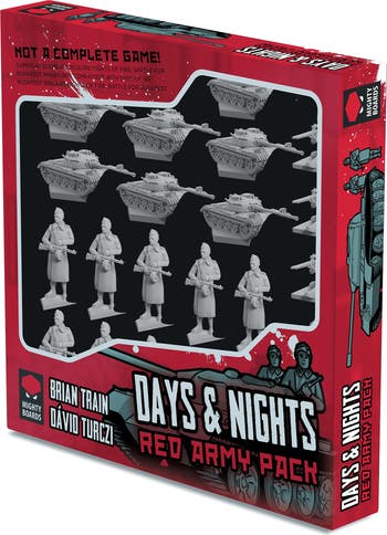 DAYS NIGHTS: RED ARMY PACK - is an add-on pack that contains 28 miniatures compatible with both Days of Ire and Nights of Fire. It also contains a small deck expansion to Nights of Fire, and an additional deck allowing campaign play. In Campaign mode you can play a game of Days of Ire followed by a game of Nights of Fire (solo, cooperative, or conflict mode up to 1v2 supported), and have the winner decided only at the end! Includes 28 unpainted miniatures 20 new cards.