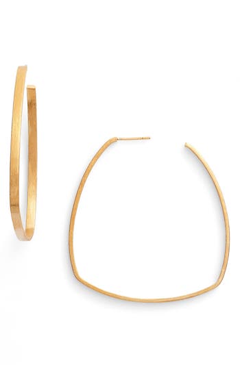 Gracefully squared edges put a sculptural twist on classic hoop earrings plated in precious metal and finished with a gently brushed surface.