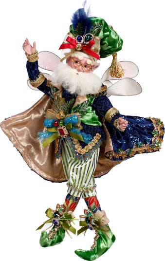 A whimsical Mark Roberts “Deck the Halls” fairy sparkles with festive charm, dressed in rich holiday fabrics and ornate trims. Its expressive face and intricate details bring a touch of magic and mischief to any seasonal display. Perfect for mantels, trees, or centerpieces, this collectible fairy instantly elevates your holiday décor with enchanting elegance.
