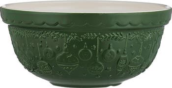 The Mason Cash Deck The Halls Size 24 Mixing Bowl in festive green is perfect for your holiday kitchen. Holding 2.15 quarts, it features an embossed holly design and chip-resistant stoneware construction. Safe for the microwave, freezer, and dishwasher, it’s perfect for mixing, prepping, or serving during the holiday season.