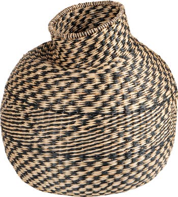 Decorative Hand-Woven Seagrass Vase, Natural and Black