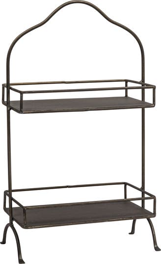 Tiered trays are a perfect way to display knick-knacks or organize other items while saving space. The shelves have wire sides to keep items from falling off. In the bathroom, fill it with rolled up washcloths, perfume bottles and an antique style hairbrush.