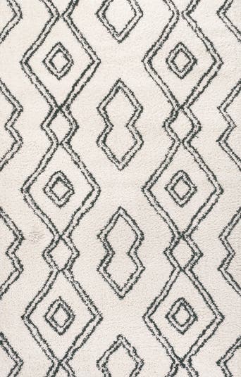 Inspired by vintage Beni Ourain Moroccan rugs, our soft and fluffy shag yarns make it easy to go barefoot. The classic Moroccan pattern has a geometric design of deep gray diamonds on a field of ivory. Anchor your Bohemian space; add softness to a bedroom, living room, or cozy reading nook; this is a low-pile shag rug with timeless style.