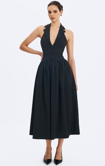 Delaney Lapel Halter Midi A-Line Dress
