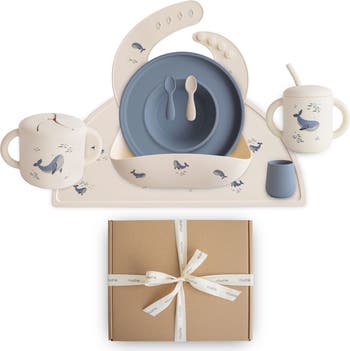 A giftable set that includes mealtime favorites made of high-quality food grade silicone encourages babies and toddlers to explore independent eating.
