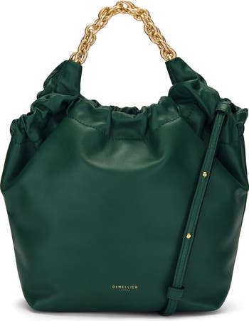 Chunky top handles accentuate the scrunched silhouette of a compact tote crafted from supple calfskin leather.