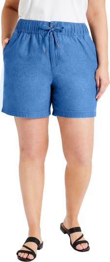 Featuring an elasticized waist with a functional drawstring, these denim Bermuda shorts prioritize both comfort AND style. An elongated inseam provides thigh coverage to keep you comfortable even on the busiest days.