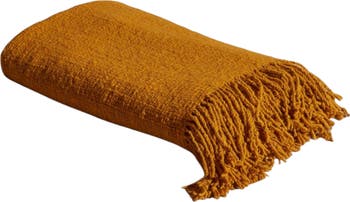 Wool Throw woven in a pedal loom in Panipat, India. Mustard Color with wool frindge.