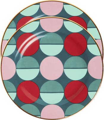 Made in collaboration with the Italian porcelain greats, Ancap, this set-of-two dessert plates is crafted from fine porcelain with hand painted 18k gold trims in our gorgeously geometric Sfere print. We’ve got a range of designs that happy maximalists can mix together, or use this set to bring a jolly jolt to your white china and plain table. Great for a gorgeous gift, these dessert plates do double duty, so snag a few for your salad course or dot around your home as a handy spot for keys or crystals as well.
