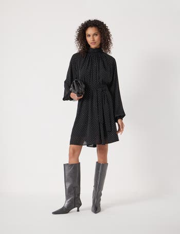What will we be wearing this party season? Pieces that strike the perfect balance of dressed-up and dressed-down, like this gathered neck mini. All-over diamanté gems give it laid-back sparkle, and the optional fabric belt means we can wear it loose and floaty or cinched when we need a touch more drama.